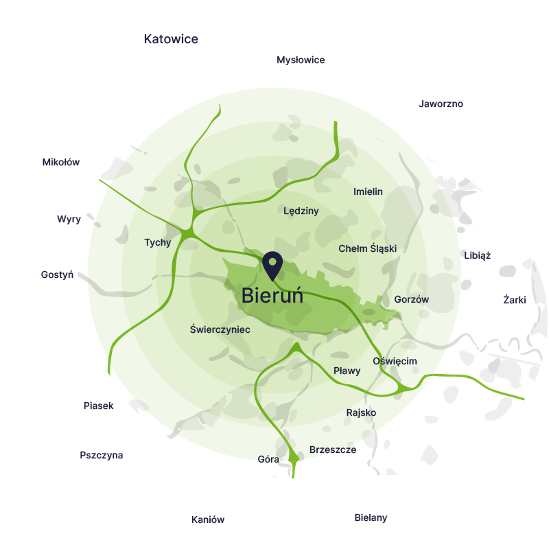 Kontenery na gruz dostarczamy na terenie całego Bierunia, niezależnie od dzielnicy czy rodzaju zabudowy. Obsługujemy zarówno rejony o zwartej zabudowie mieszkalnej, jak i spokojniejsze obszary o rozproszonych domach.