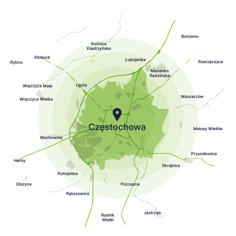Działamy na terenie całego miasta i okolic, podstawiając kontenery oraz big bagi dopasowane do rodzaju i ilości odpadów. Organizujemy legalny wywóz gruzu, odpadów poremontowych i budowlanych, dbając o sprawną realizację i przejrzyste zasady.