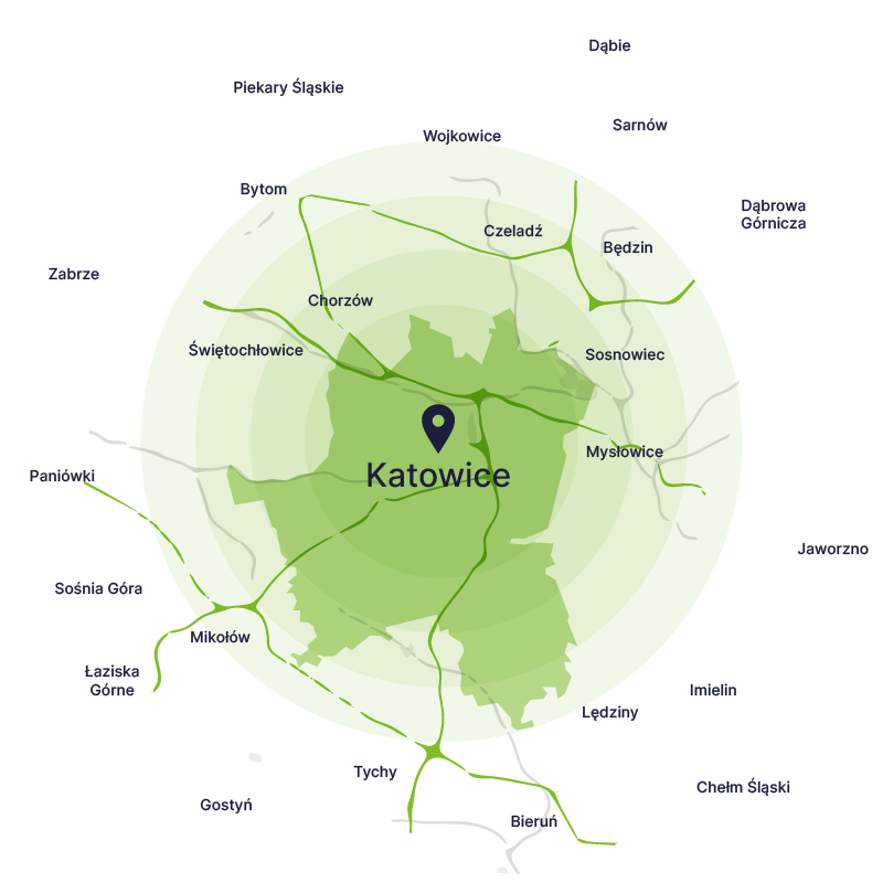 Tak, działamy na terenie całych Katowic – m.in. Ligota, Piotrowice, Brynów, Koszutka, Śródmieście, Zawodzie i Dąb. Dowozimy też kontenery do miast ościennych, np. Chorzowa, Mysłowic, Tychów i Siemianowic Śląskich.